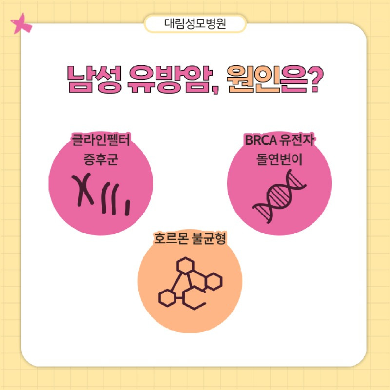 남성 유방암의 원인은 여러 가지가 있는데, 주로 호르몬의 불균형, 유전적 요인, 그리고 특정 질병과 관련이 있어요.