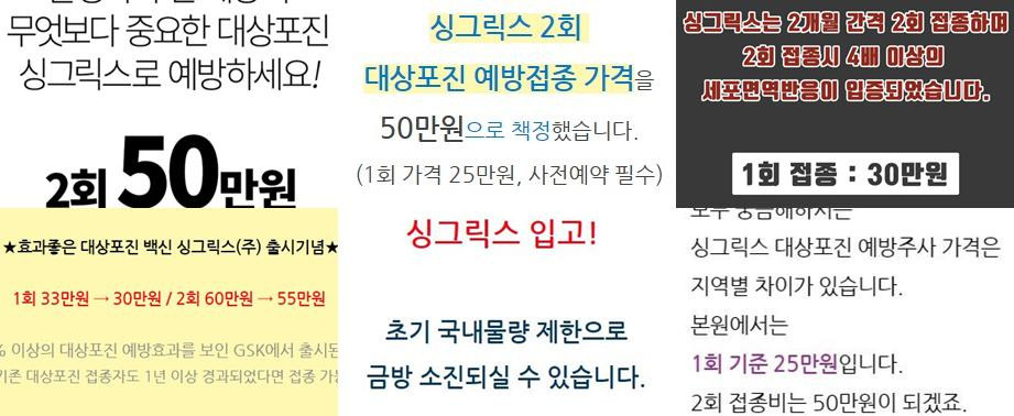 싱그릭스 접종 가격
