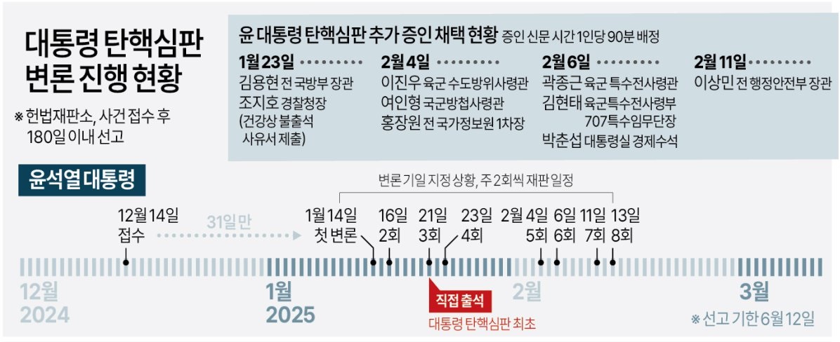 다음으로, 변론이 진행되는 동안 증인 심문 및 여러 법적 절차가 있습니다. 각 변론에서 어떤 증인이 출석하고 어떤 증언이 이루어질지가 큰 관심사입니다. 변론 과정에서는 증인에 대한 신문이 이루어지며, 법정에서의 증언이 탄핵 여부에 큰 영향을 미칠 것으로 보입니다.
