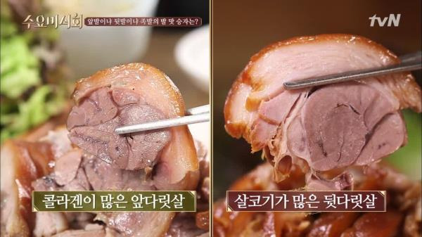 영양 성분에서도 차이가 나는데요, 앞발은 단백질이 더 많고, 뒷발은 지방이 더 많이 포함되어 있어요. 그래서 다이어트를 고려하는 분들은 앞발을, 고소한 맛을 원하시는 분들은 뒷발을 선택하는 것이 좋겠죠.