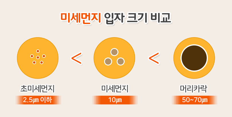 이 그림을 보면, 초미세먼지는 2.5마이크로미터 이하로, 미세먼지보다 작고, 머리카락보다도 작습니다. 이러한 작은 입자는 호흡기를 통해 쉽게 체내로 들어올 수 있어요.