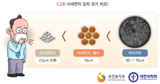 이 그림을 보면, 초미세먼지는 2.5마이크로미터 이하로, 미세먼지보다 작고, 머리카락보다도 작습니다. 이러한 작은 입자는 호흡기를 통해 쉽게 체내로 들어올 수 있어요.