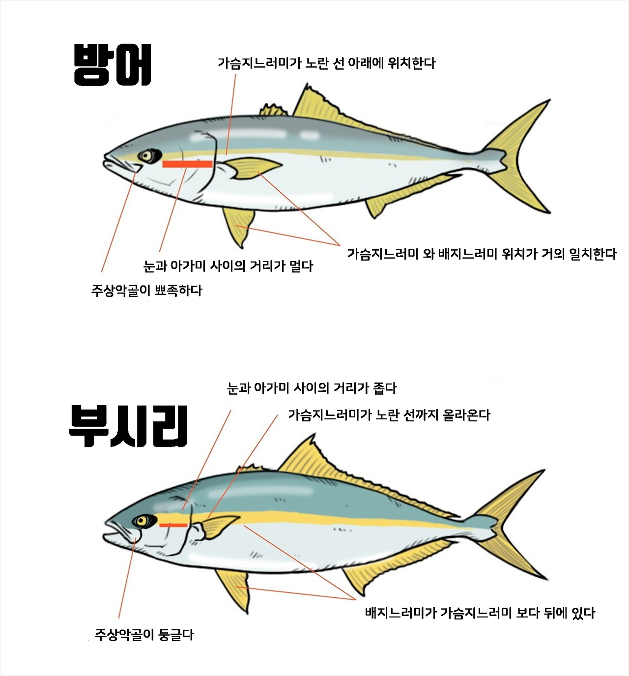 방어와 부시리 구별하는 방법