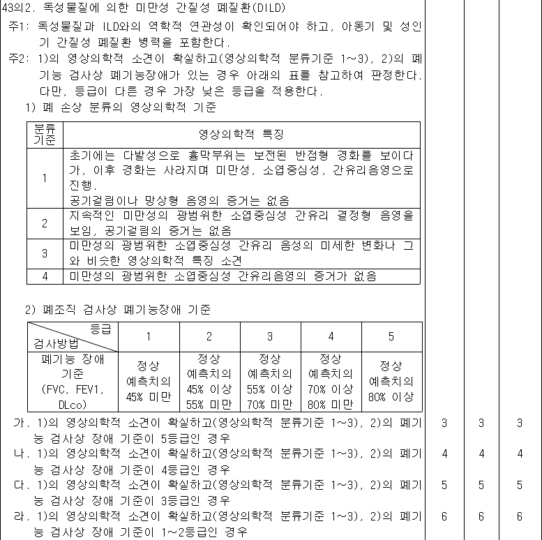 신체검사 등급 기준