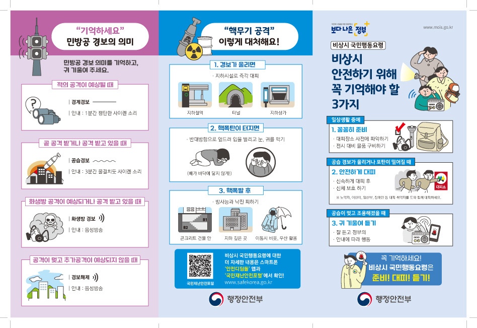 전쟁발전시에는 긴급 대피, 민방위 훈련 등의 지침을 따르는 것이 필요해요. 이때는 정부의 안내를 철저히 따르는 것이 가장 중요해요.
