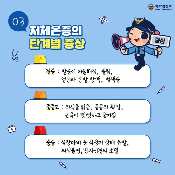 저체온증의 증상은 경증, 중증, 중증으로 나눌 수 있어요.