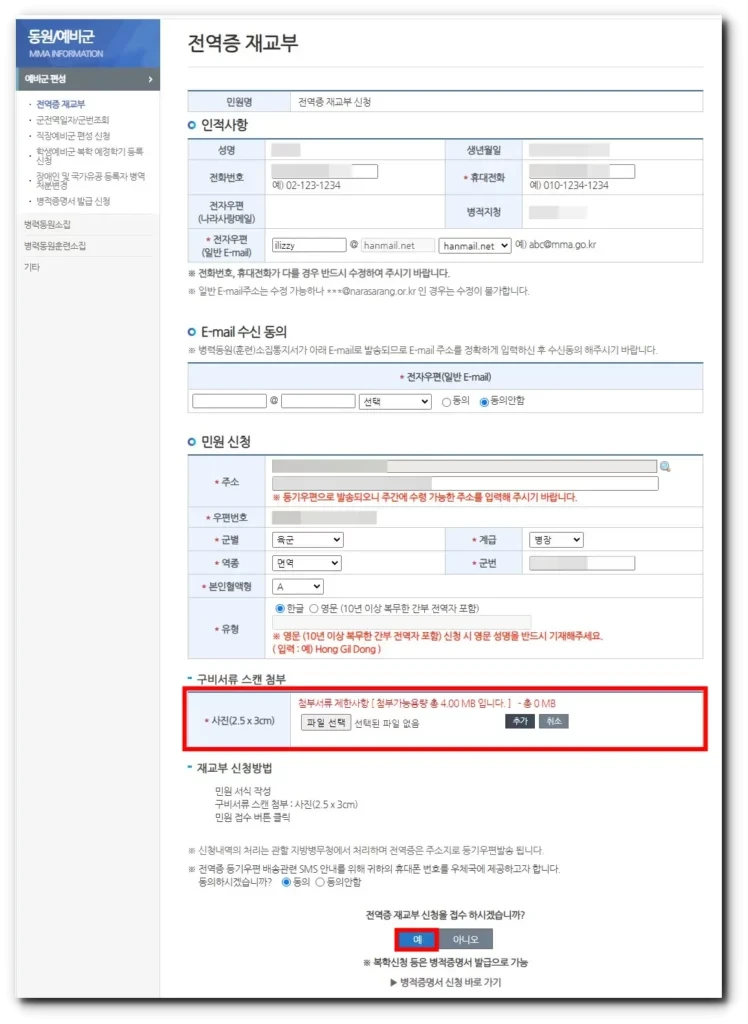 1. 신청서 작성 : 병무청 웹사이트에서 신청서를 작성해요.