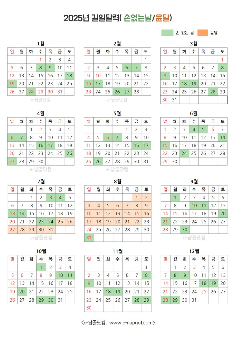 이 날짜들은 이사나 결혼을 계획하는 분들에게 특히 중요한 날이죠.
