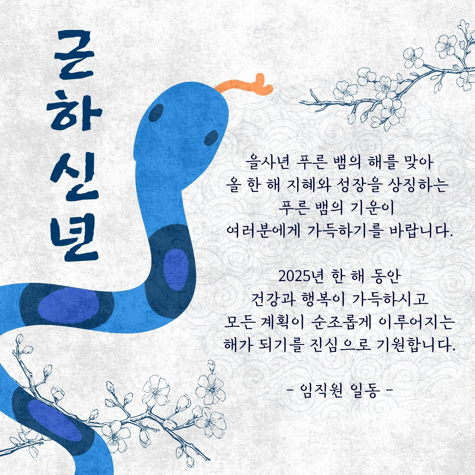 - "2025년 푸른 뱀의 기운으로 건강과 행복이 가득하길 기원합니다!" 🐍